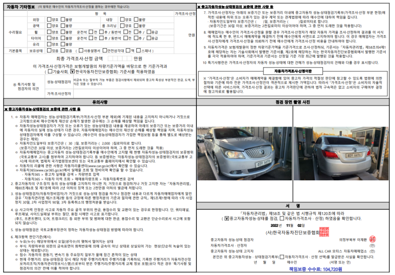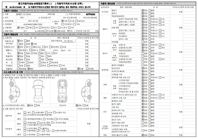 중고 자동차 성능 점검기록부